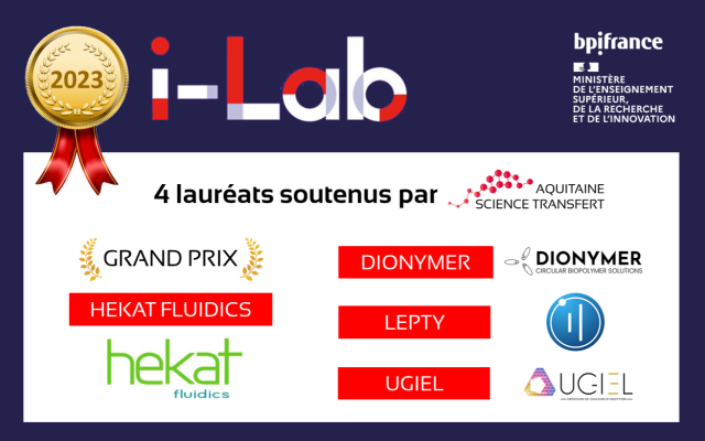 05/05/2023 - 8 lauréats dont 2 Grand Prix sur les trois concours nationaux d’innovation 2023 i-PhD, i-Lab et i-Nov : moisson 2023 exceptionnelle pour la SATT Aquitaine Science Transfert, son incubateur Chrysa-link et pour l’écosystème de la recherche et de l’innovation deeptech néo-aquitain !